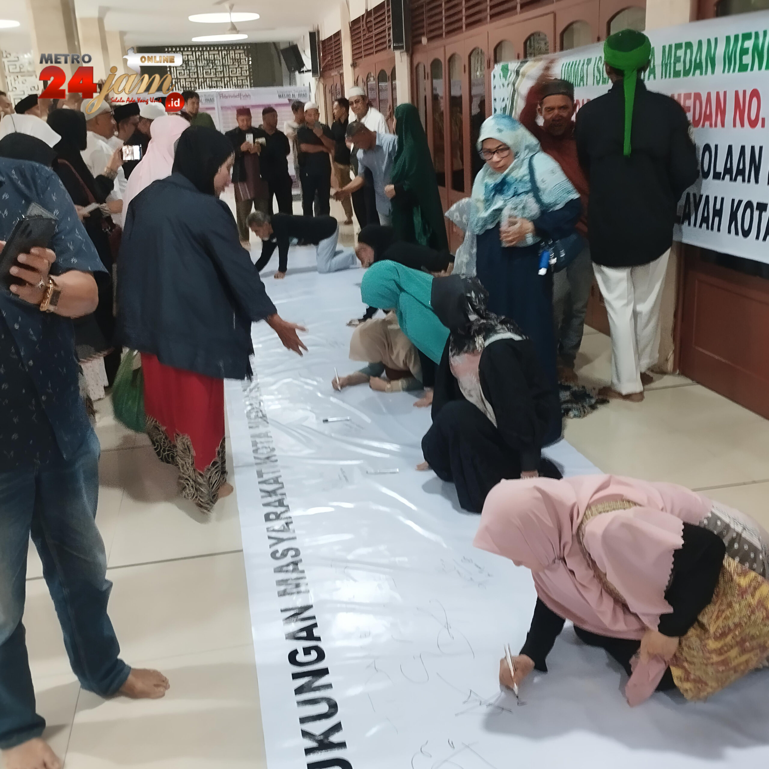 Dari pantauan wartawan, aksi tandatangan dukungan digelar usai Sholat Jumat di Masjid Al-Jihad Medan. Sedikitnya seribuan orang telah memberikan tandatangan dalam bentuk spanduk.
